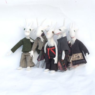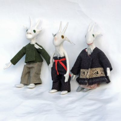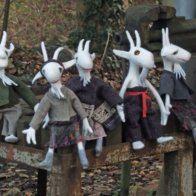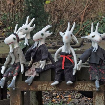 Fünf schöne Ziegen sind in geheimer Mission noch bis 2026 unterwegs. Bis Mitte Februar saßen sie im Ostholsteinischen Landesmuseum in Eutin bei der Ausstellung "Paare - Resonanz der Dinge". Es ist eine Ausstellung, für die sich drei Landesverbände für Angewandte Kunst zusammengetan haben und die noch in Lüneburg und bei Schwerin zu sehen sein wird. Im Moment machen die Ziegen hier Urlaub und sammeln Lebenserfahrung. Sitzt es sich gut auf Maulwurfshügeln? Schmeckt Himbeereis? Passen die Klamotten der Ziegen auch den alten Gummipuppen? Es ist für meine Enkel UND für die Ziegen sehr wichtig, dies zu prüfen.