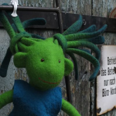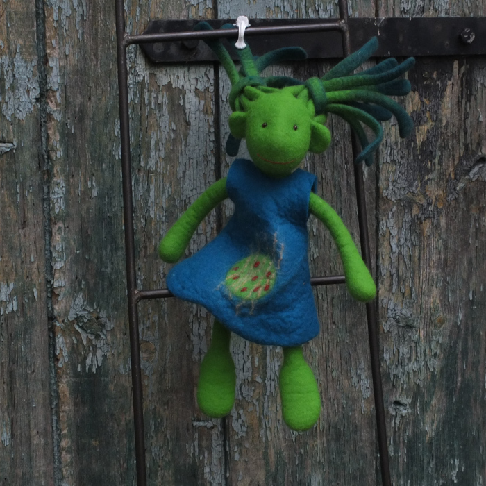 Zottelpuppen sind wunderbare Spielgefährten - unter den Kleidchen sind schön geformte Körper, die Haare zum Flechten und Verknoten, man kann ihnen Socken stricken, sie auch mal durch den Matsch ziehen und wieder baden. Zottelpuppen baue ich zu und zu gerne, weil sie wirklich gute Puppen für ziemlich viele Aufgaben sind