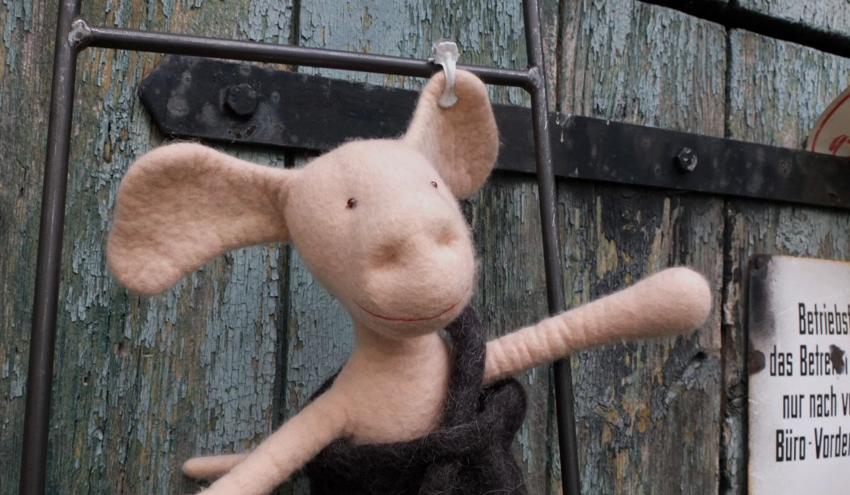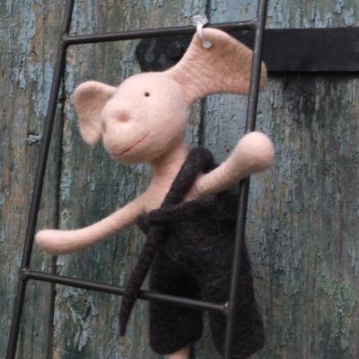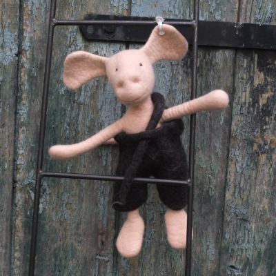 Dieses Hausschweinferkel will ein Wildes sein, deshalb erträgt es die ziemlich kratzige Frischlingshose.