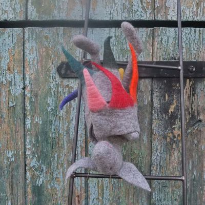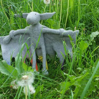 Fledermaus mit Flughilfe und extrem gutem Gefühl für eine ausgeglichene "work-life-balance". Wenn sie müde ist, benutzt sie die Flughilfen als Umhüllungshilfen und ruht kopfüber.