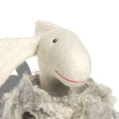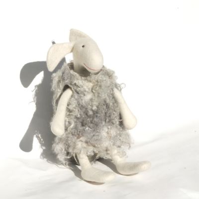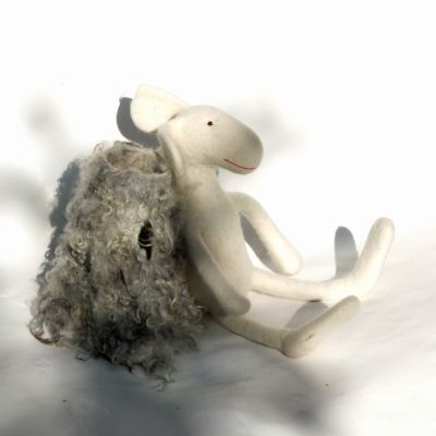 Das Schaf ist ein Wunder, denn eigentlich ist es nicht möglich, etwas kuscheliges aus Filz zu bauen. Was zu weich ist, ist meistens noch nicht fertig gefilzt und geht schnell kaputt. Meine Viecher sind natürlich fertig gefilzt - auch dieses, trotzdem ist es sehr anschmiegsam.