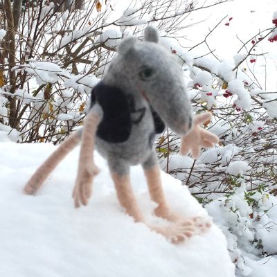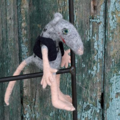 Schiffsratten waren die Verkaufshits in der Sommergalerie am Hafen in Wismar. Hier ist die komplizierteste mit Fingern und Zehen und gefilzten Augen im Hosentaschenformat.