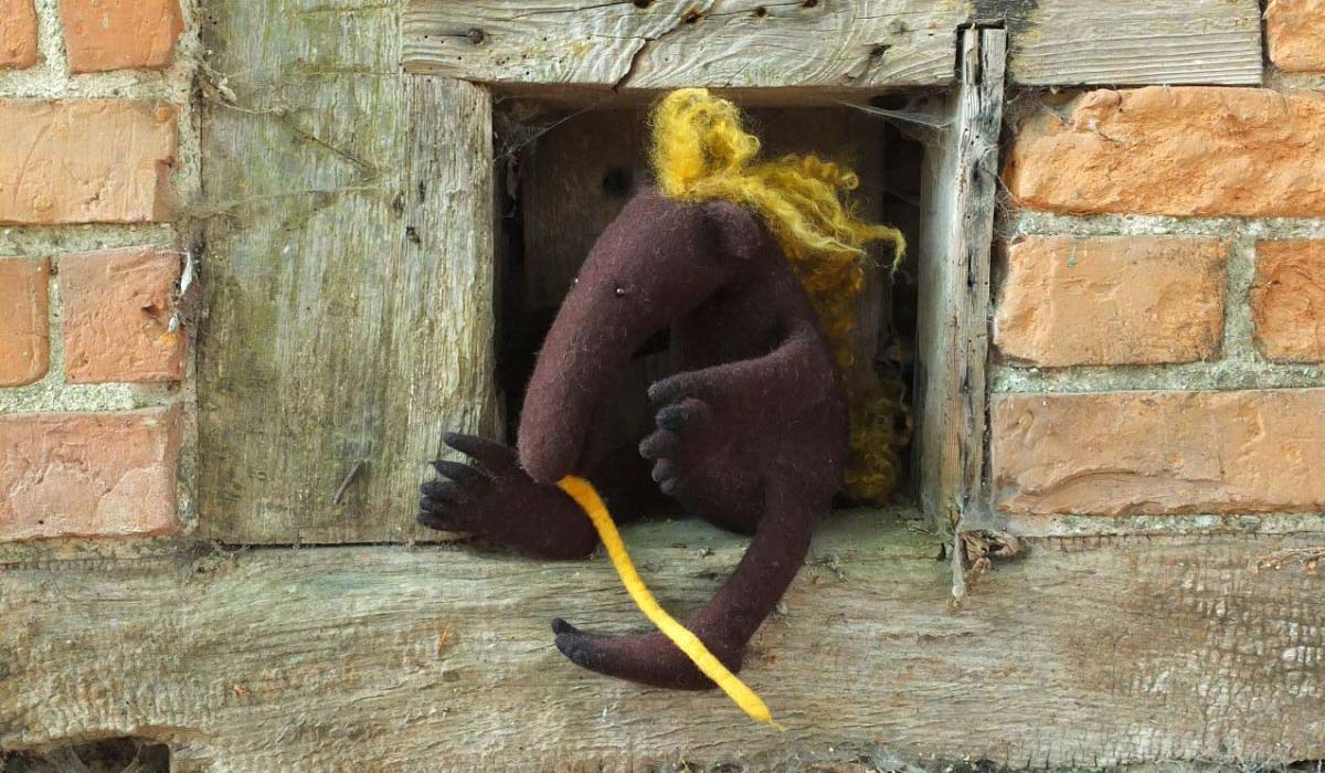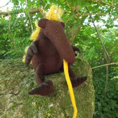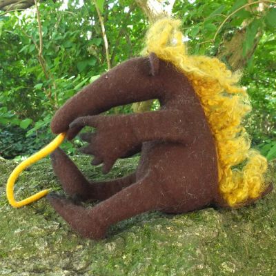 Es ist ein robuster, älterer Herr Ameisenbär - mit langen Krallen. Er funktioniert wie ein Teddy als Schutzding.