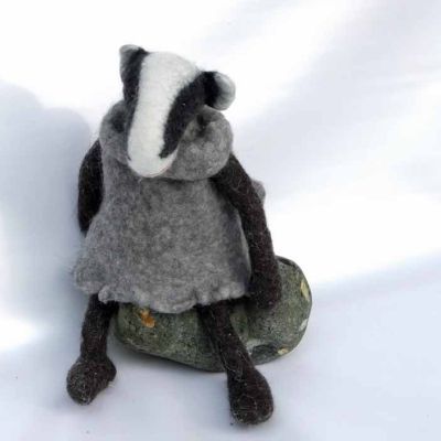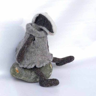Dieser kleine Dachs ist einer von den kratzigsten Kuscheltieren der Welt. Er ist nicht DAS kratzigste, denn ich habe schon ein paar so Wildschweine und Elche von der Kratzigkeit gebaut, aber er ist zumindest ebenbürtig. Und er ist schön und lieblich und von meiner erwachsenen Tochter Maud gebaut, die manchmal in meiner Werkstatt arbeitet.